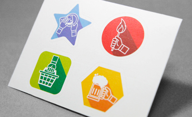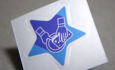 발색이 좋은 아트지에 인쇄하여 색상표현이 선명하고, 가격도 저렴해 홍보용으로 사랑받습니다. 잘 찢어지며 스티커 표면에 메모가 가능합니다.