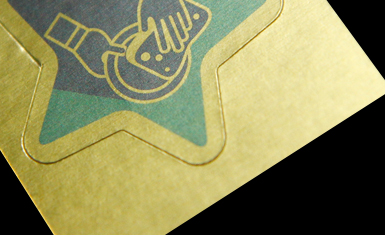 금색 광택이 뛰어난 메탈 느낌의 재질로 내수성이 강해 물에 젖거나 잘 찢어지지 않습니다. 발색이 잘 되어 바탕에 색상을 넣어 인쇄하면 화려한 느낌을 살릴 수 있으나 스크래치에 약해 주의가 필요합니다.