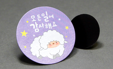 자석 위에 코팅인쇄물을 붙여 만드는 인쇄물로 전체가 자석이며, 쿠폰이나 메뉴판으로 많이 사용됩니다. 형태는 원형과 사각이 있으며 사각에는 모서리가 라운딩처리 됩니다.